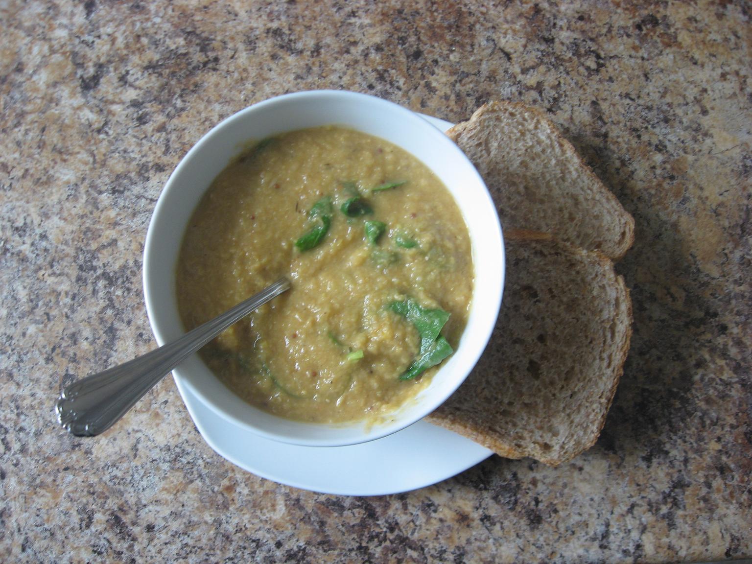 The picture above shows the leftover lunch soup I had today – I stirred in 1 cup of baby spinach leaves to up the greens factor and skipped the quinoa for some “rustic” bread. But last night the soup stood alongside a 1/2 cup of mixed quinoa. Yum!!