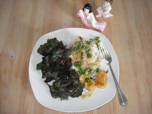 Actually, don’t add the tofu. It was disappointing. Not zesty enough – tofu (especially the cheaper stuff that I can afford) needs all the help it can get. I adapted the recipe to give it more oompf but the tofu still tasted like, well, tofu. Meh. So while the picture above has yummy lemon-y purple kale with lime coconut basmati rice, sesame seeds, green onions and “orange sesame tofu”, I’m only giving you the recipe for the rice (because let’s face it, purple kale is awesome no matter how you eat it – I added 1/2 cup lemon juice, some tamari, bit of sesame oil, and some cayenne…).