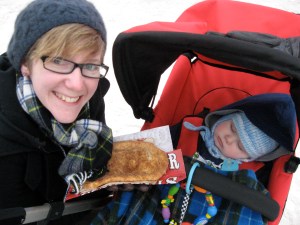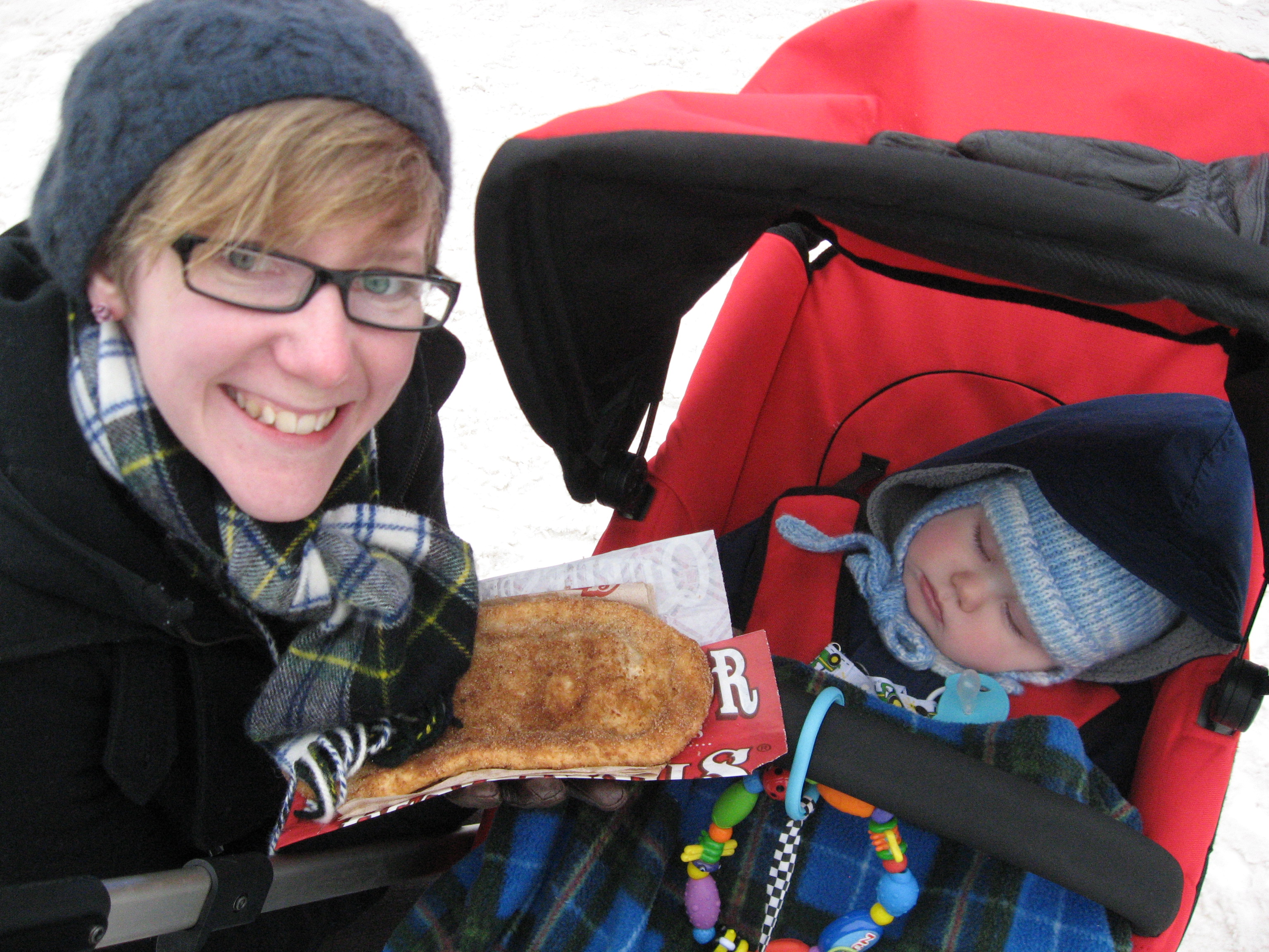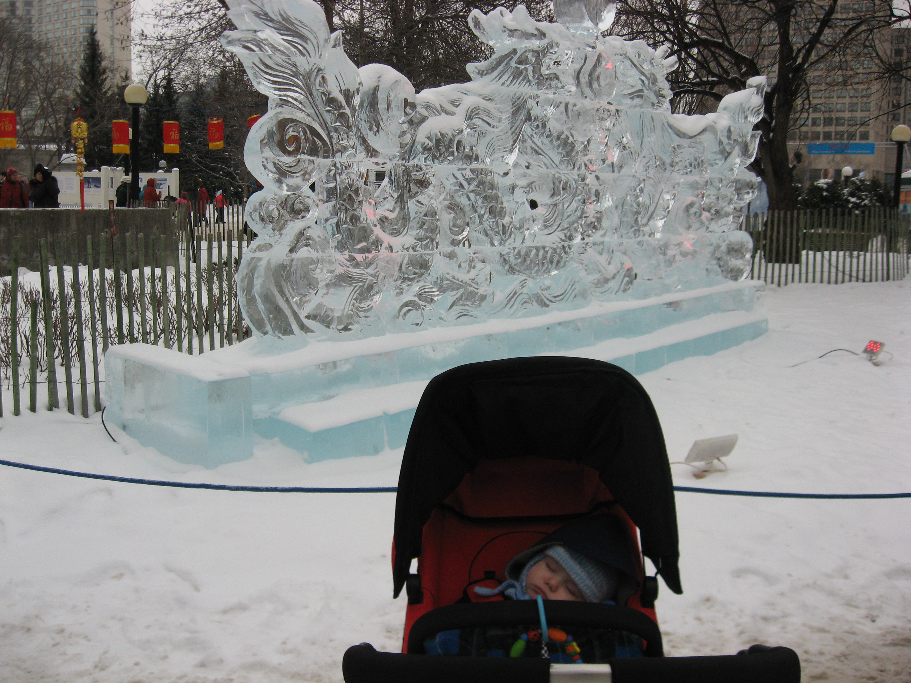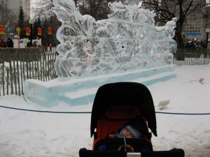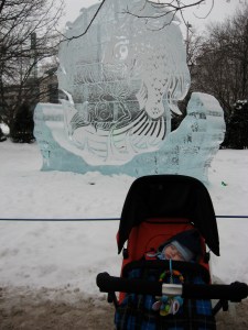 Update on today’s resolution: resounding success. A., Budsie and I went downtown to take in some ice sculptures and eat Beavertails. Budsie was obviously blown away by the day’s festivities. Have a look at this photo evidence: