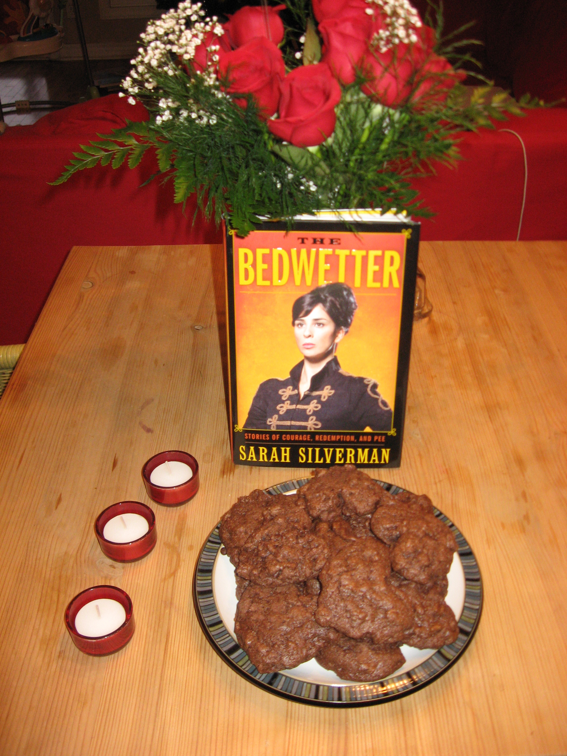 *pictured here with Sarah Silverman book for my sweetheart and flowers from my sweetheart*