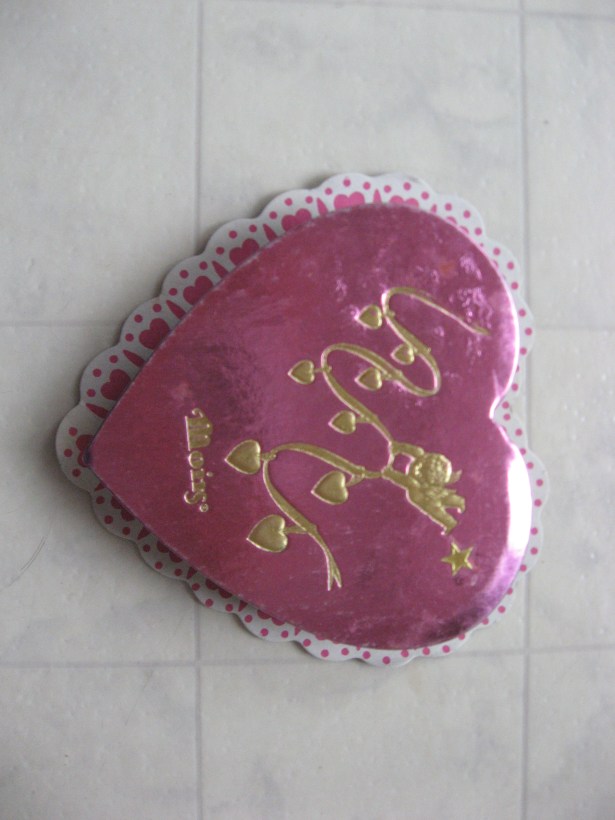 This is, well was, a box of chocolates from February 14, 1990. A boy by the name of Nicholas gave these chocolates to me. And I kept the box. Strange because I’m not usually sentimental this way. Sorry boys, but if you dated me and gave me a gift, chances are it’s with someone else right now. Particularly if it was of the teddy bear persuasion. I’m of the mind that once the relationship is over, the stuff from that relationship needs to go away. Unless that stuff is a) gorgeous jewelry (and sadly, it rarely is) or b) one of the coziest pairs of socks I’ve ever owned (which technically weren’t a gift…I stole them).