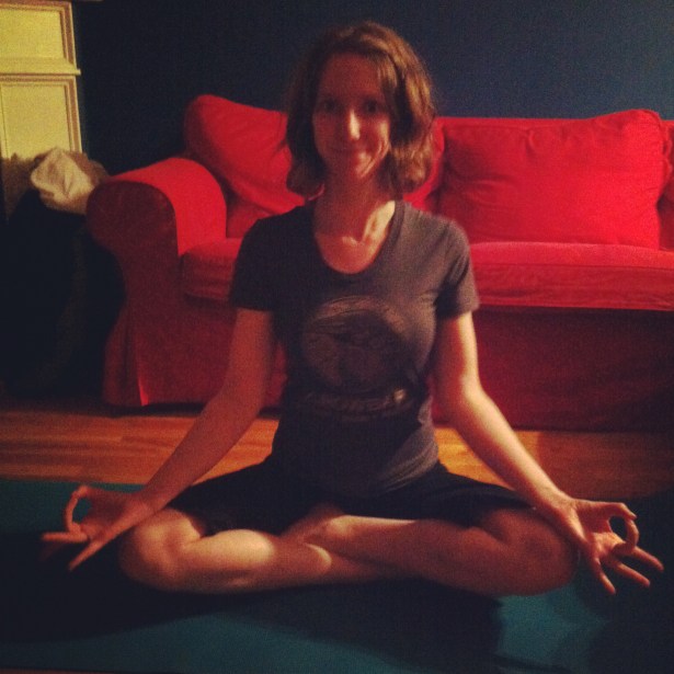 So what’s this about a do over? Well, here’s what happened. Everything was going swimmingly. I missed Friday somehow (slept in, had sexy AB company), but was raring to go Saturday. Until I lifted Budsie. My almost-two year old is a whopping 32lbs now, and when I went to lift him up on Saturday, he decided to throw his 32lb weight around a bit, causing me to lean forward. OUCH! It’s all better now, but yoga didn’t happen Saturday or Sunday.